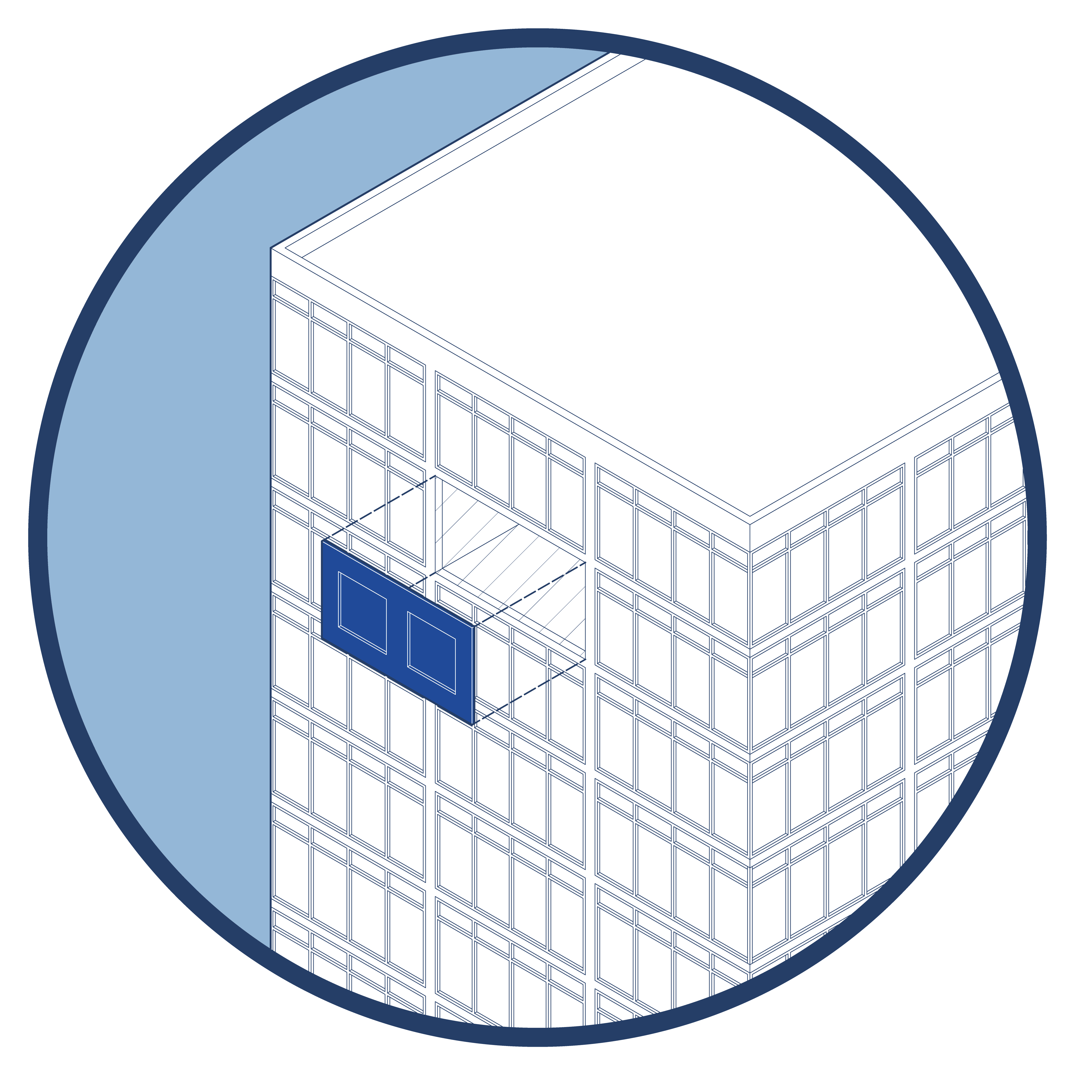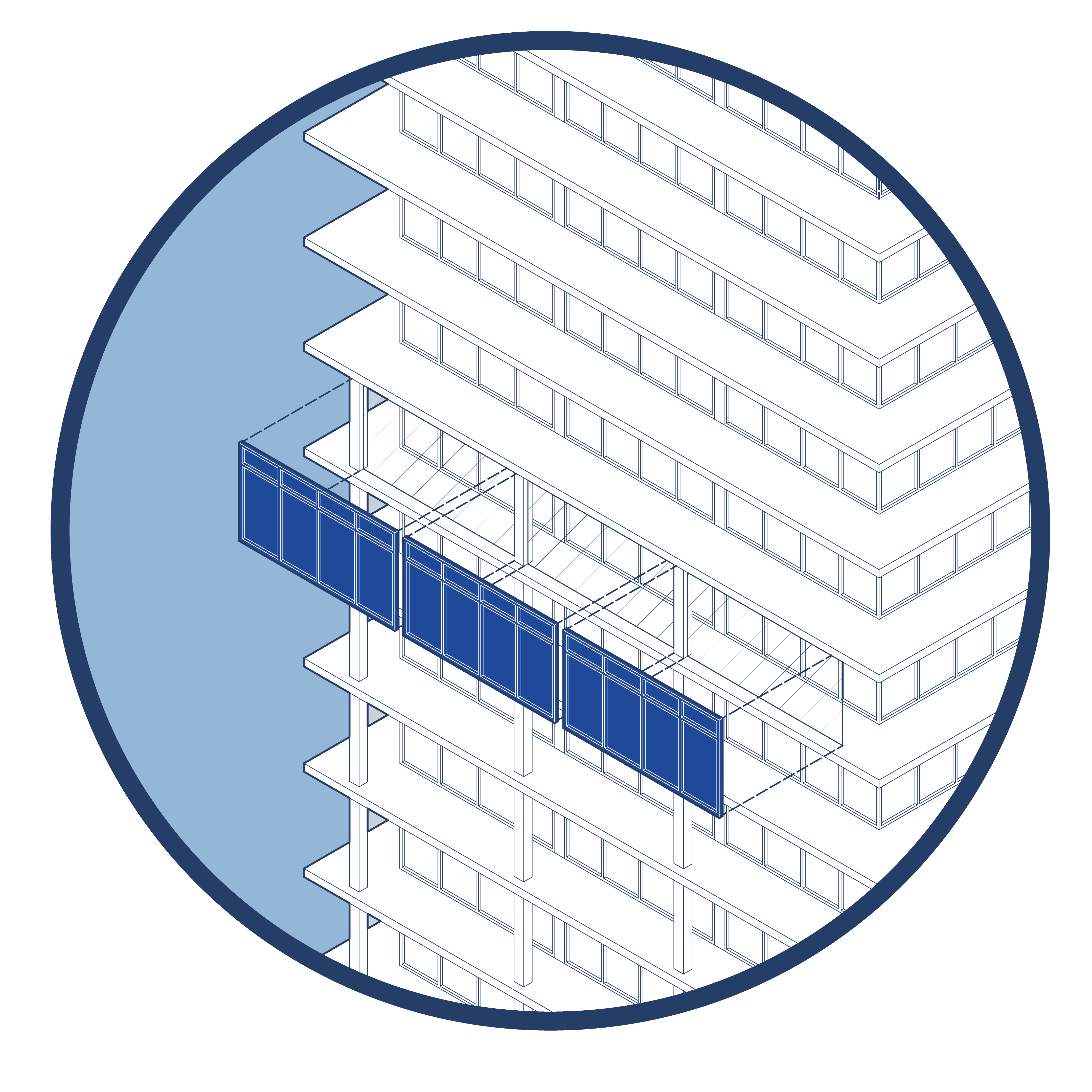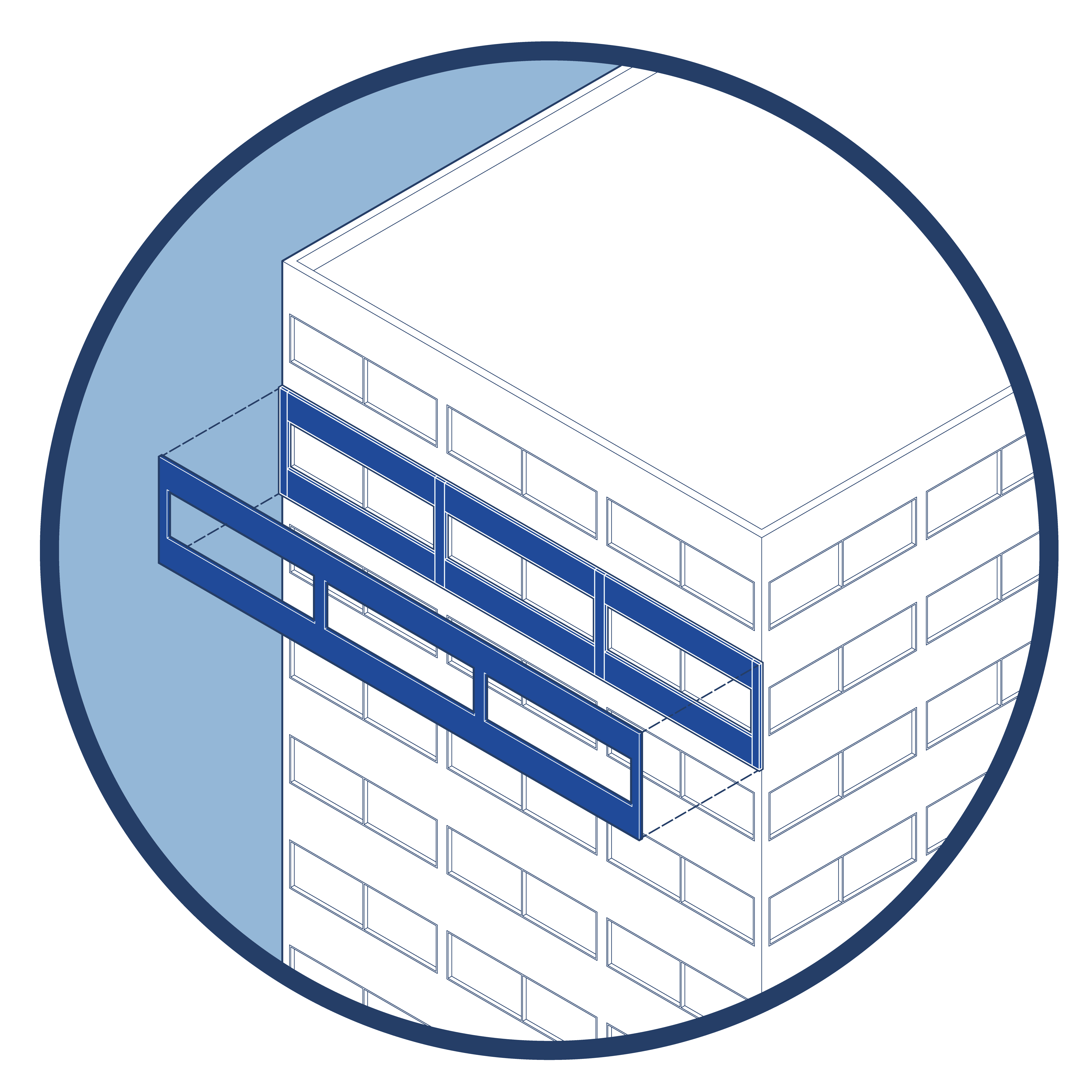 The renovation scenarios listed below provide a schematic overview of the construction stages implied by the renovation type. Your building envelope may look a little different from the images provided, but these stages are likely to occur in each scenario.