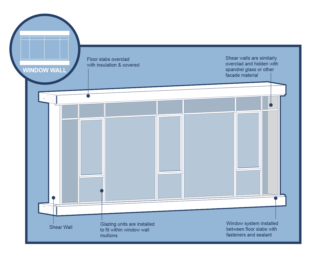 Many contemporary high-rise condominiums in Toronto are built with window wall façade assemblies. These systems are designed to span the gap between your floor slabs, and connect to the floors above and below by overlapping the slab. This wall system is "sandwiched" between floors, and the joints connecting components are mechanically fastened and sealed. This envelope system is relatively inexpensive when compared to other glazed façade systems like curtain walls, can be constructed on site, and the number of similar systems built in Toronto can attest to a skilled workforce familiar with its installation.